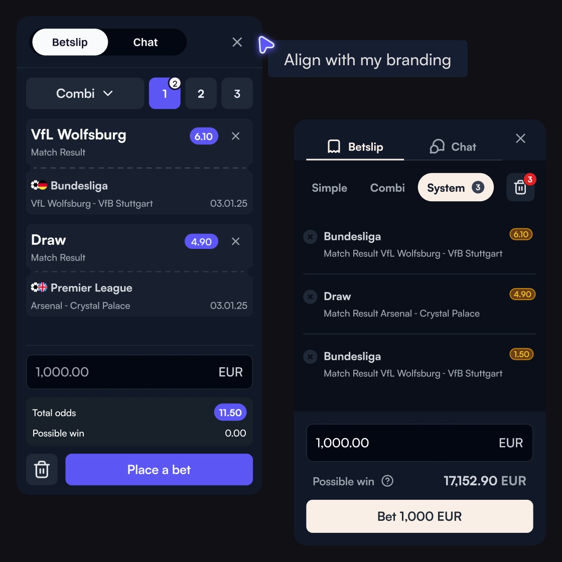 Enable or disable powerful betting tools like Bet Builder, Cashout, and Early Payout with a few clicks. Customize how they work, who gets access, and when they’re triggered — all without writing a line of code.